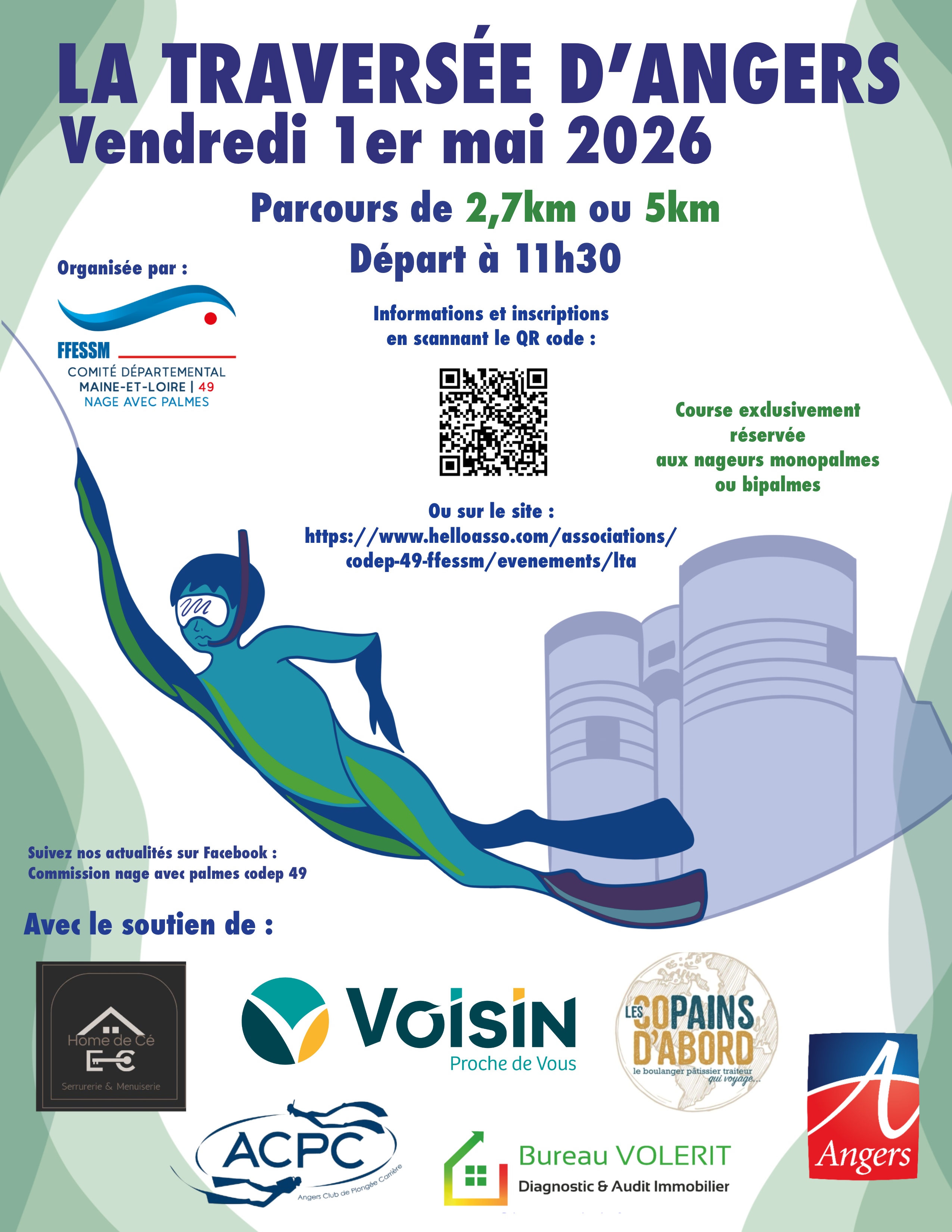 Vendredi 1 mai 2026 : Traversée d’Angers à la nage avec palmes avec et sans support